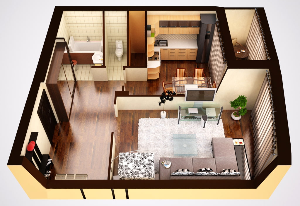 Существует достаточно способов эффективного зонирования однокомнатной квартиры малой площади. Каждый хозяин выбирает сам, какой из вариантов для него лучший и удобный.