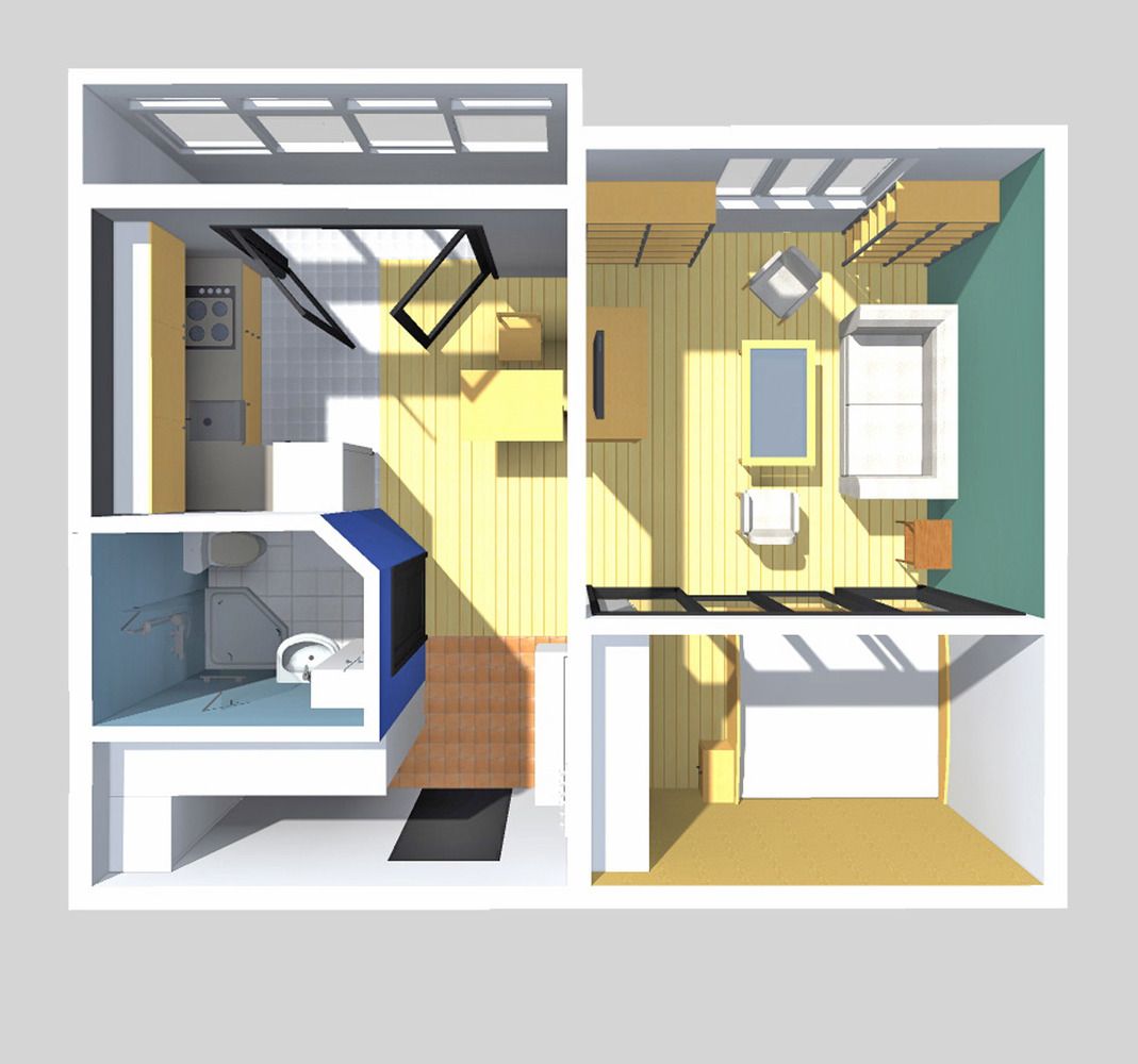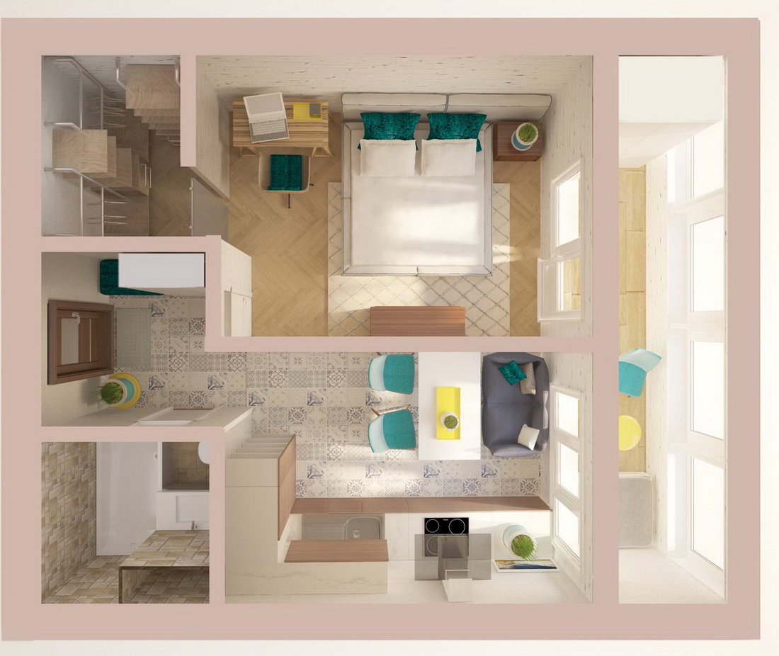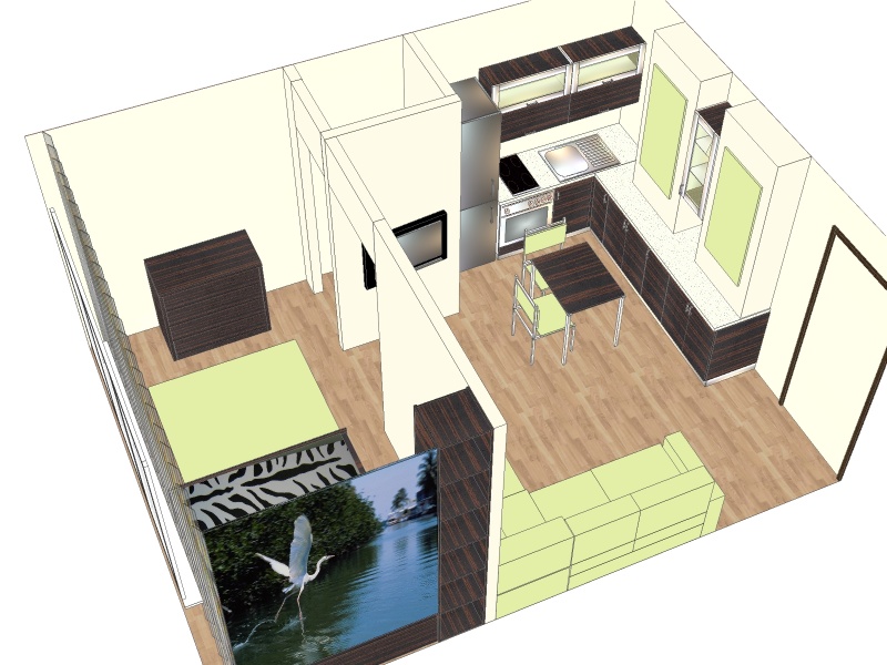 Этот вариант подойдет, если вы не хотите трогать кухню, а единственная комната не меньше 16 метров.