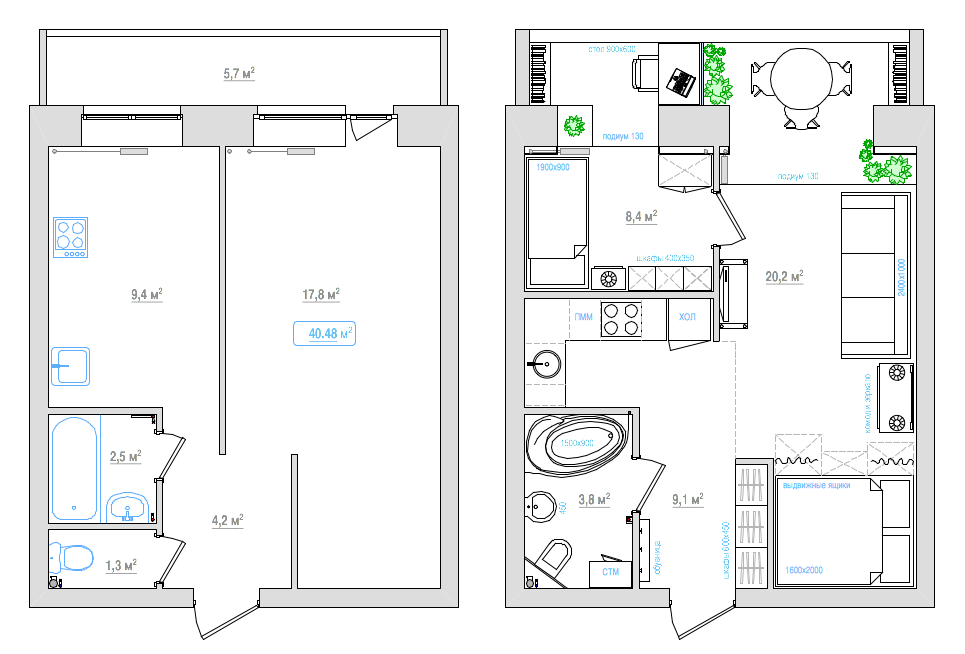 Перепланировка однокомнатной квартиры часто преследует цель визуально увеличить площадь и организовать различные зоны – общественную, рабочую, отдыха. Дизайнеру Николаю Твердову это удалось: предложенные им 3 варианта планировки однушки площадью 40 квадратных метров в доме серии И-155 будут актуальны для семьи с ребенком, молодой пары и холостяка.