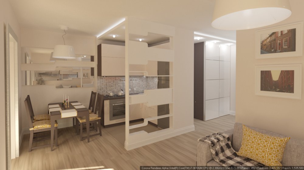 Или зону для гостей от кухни.