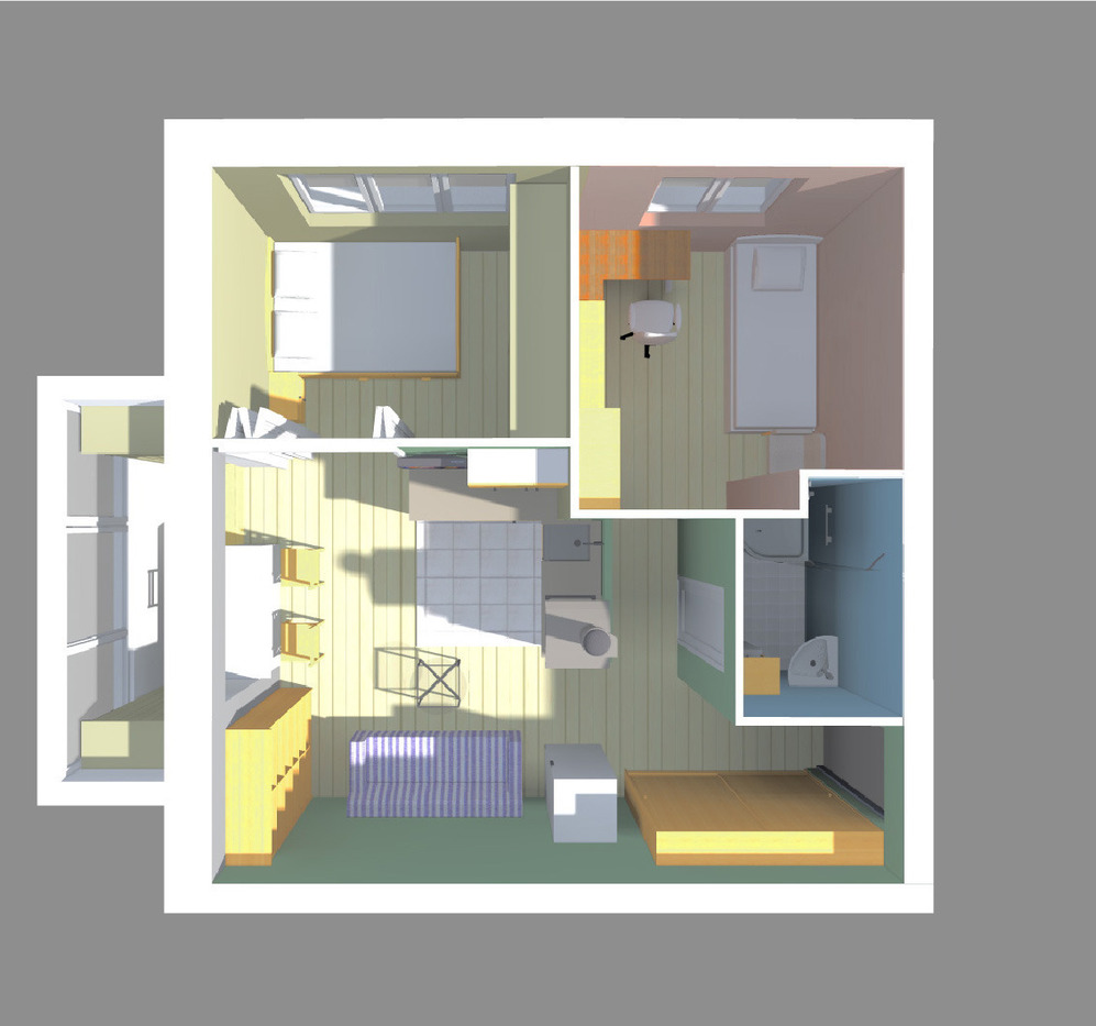 Уместить кухню и спальню в ниши