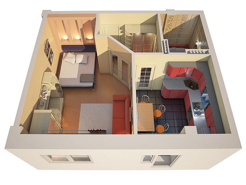 Обыкновенное жилье с одной комнатой является неплохим вариантом для семьи, которая состоит из двух человек и более, поскольку здесь имеется одна полноценная комната, есть возможность уединения.