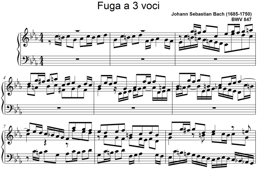Примечательна аномальная ритмика тактов с 38 по 49 включительно. Я сохранил ее, потому что партия действительно была сочинена Бетховеном, а мне не показалось логичным, чтобы за ней сразу следовала фуга, дописанная мною.Я сочинил несколько музыкальных тактов, основанных на начале прелюдии, путем плавного перехода.