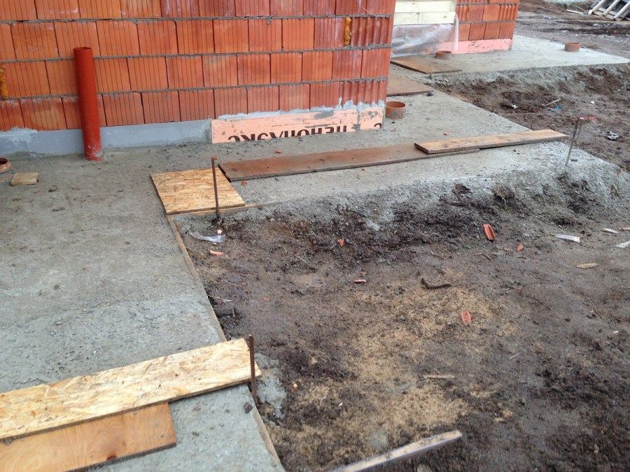 Такое утепление отмостки экструдированным пенополистиролом внешне не отличается от обычной бетонной заливки, но является более желаемым для домов с отапливаемыми подвальными помещениями либо с мелкозаглубленными фундаментами, а также для пучинистых грунтов.