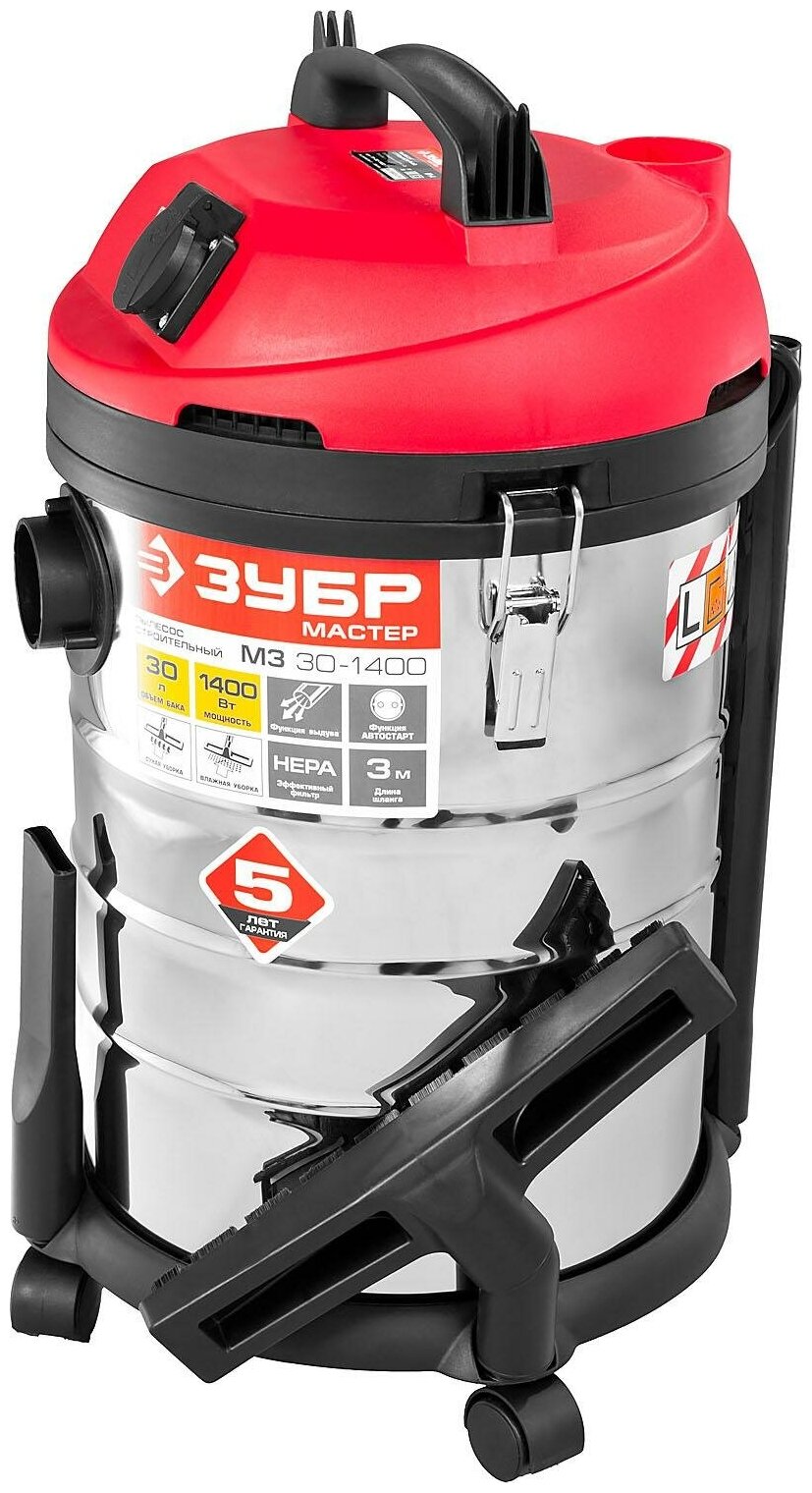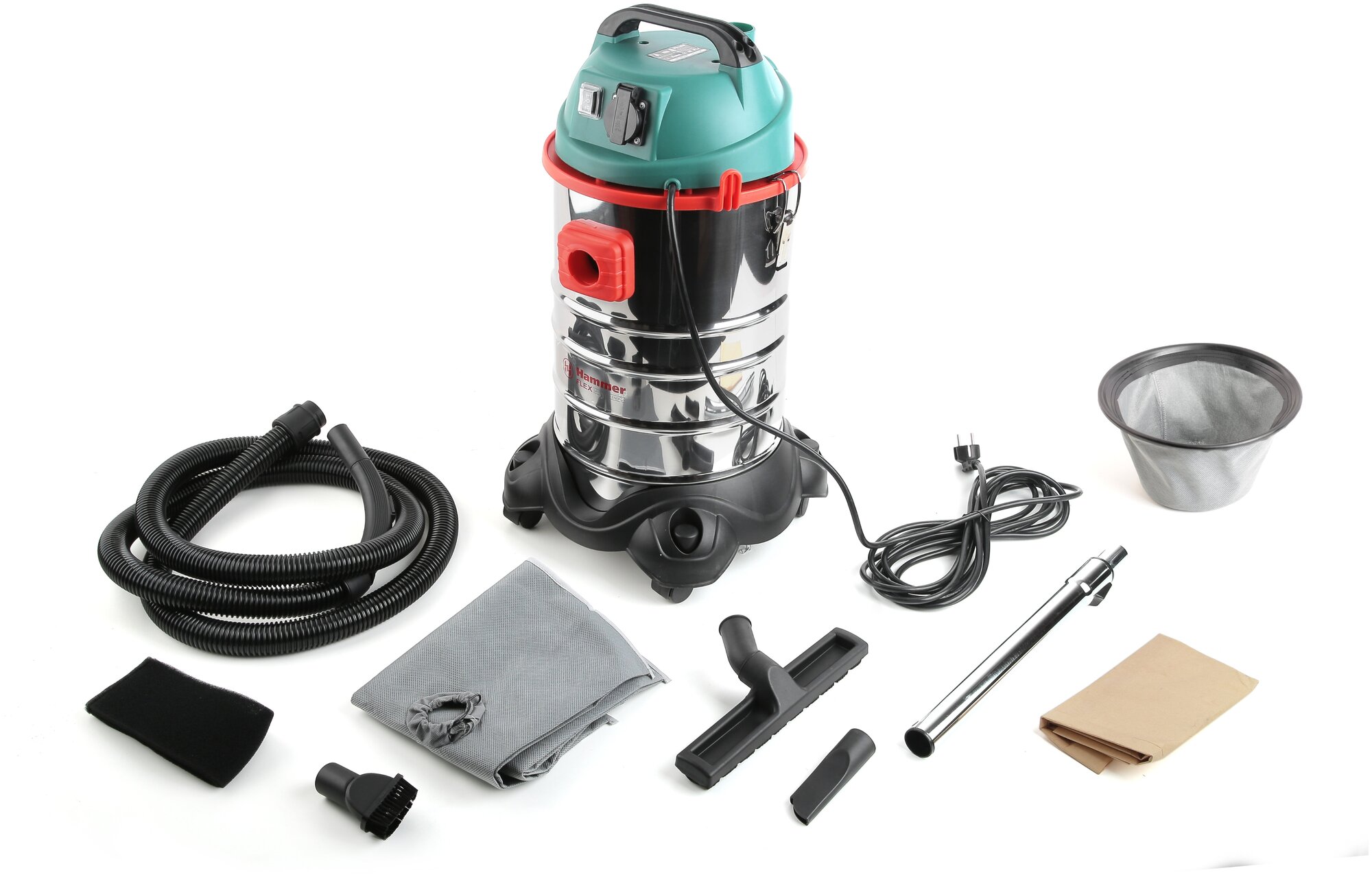 Универсальный недорогой строительный пылесос, который способен справится как со сбором тяжелого мусора, так и с всасыванием различных жидкостей. Прочный контейнер изготовлен из пластика, устойчивого к постоянным механическим воздействиям. Прочные материалы корпуса и качественная сборка, помогут пережить пылесосу практически любые стройки или ремонты.