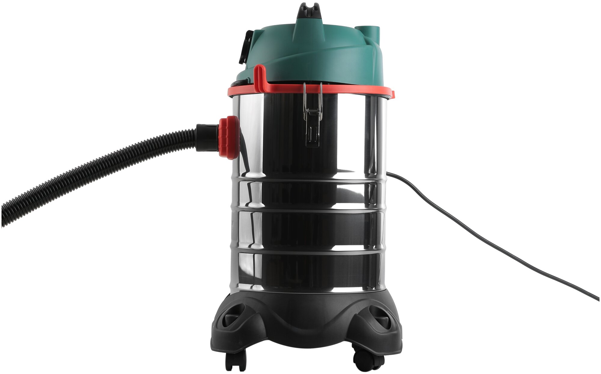 Промышленный пылесос, который отлично справиться с небольшими загрязнениями после ремонта. Конструкция отлично справиться как с уборкой сухого и влажного мусора, так и со сбором жидкости. Уровень разряжения не падает ниже 11.4 кПа, а значит, поток воздуха достаточно мощный, чтобы затянуть штукатурку, песок и другие сыпучие материалы.
