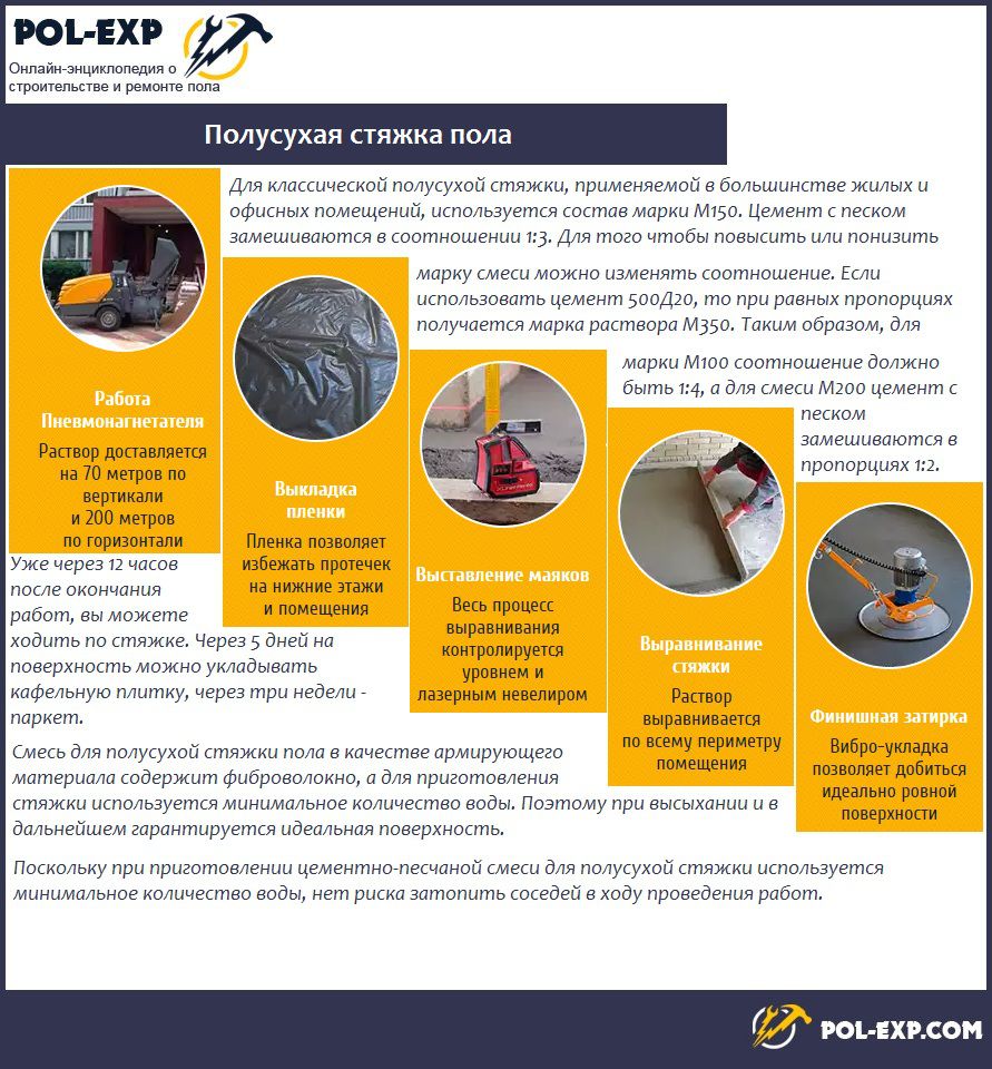 Необходимо обратить внимание, для стяжки пола марка раствора должна быть не ниже М150, зачастую применяется М200.